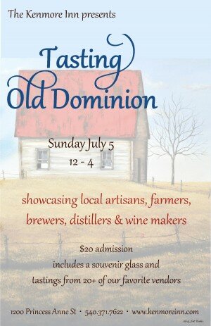 To celebrate all of Virginia’s fine artisans with our local residents, we are hosting an event here at the Kenmore Inn showcasing our favorites from around the state. Our “Tasting Old Dominion” event will focus on Virginia’s booming artisanal movement. We have asked specific beer, wine, and spirit distributors, as well as local produce farmers to participate. The event is being held on Saturday, July 5, 2015 and will run from 12 p.m. until 4 p.m. Each vendor will have a designated display and tasting area. Our beer will be in our ‘beer garden’ patio with spirits on the same level of the building, in our historic pub. All of Virginia’s fine Wines will be in our elegant main dining room.